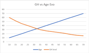 Representación con fines informativos de la evolución natural de GH con respecto la edad